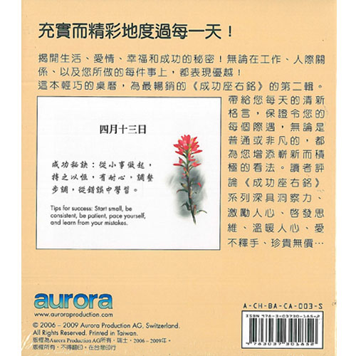 MOTTOS FOR SUCCESS 2/致勝座右銘 作者 : 瑪利亞芳婷 出版社 : GOLD QUILL 商品語言: 繁體中文 裝訂: 貨品尺寸/規格: 限制數量: 供貨狀態: 譯者 : 出版日期: 頁數: 適用分類: 全 運送條件: 不拘 (商品已缺貨,可來電書房門市詢問能否調貨) 調貨說明 NT$207 NT$230 折扣: 9 折 數量: 缺貨中 加入追蹤清單 可訂購時通知我 分享: 商品介紹 作者簡介 目錄 書摘/導讀 推薦序 最近閱覽過的商品 買過這本書也買了