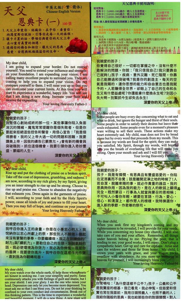 恩典卡(一)(二)適合所有人(包括非基督徒),恩典卡(三)只適合基督徒。
