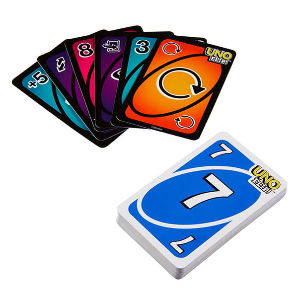 8. 若有人打出「反轉牌」,每位玩家將自己的手牌全部翻面(暗面朝自己),牌庫與棄牌堆的牌也要一起翻面,下一位玩家依據翻面後的數字與花樣繼續遊戲