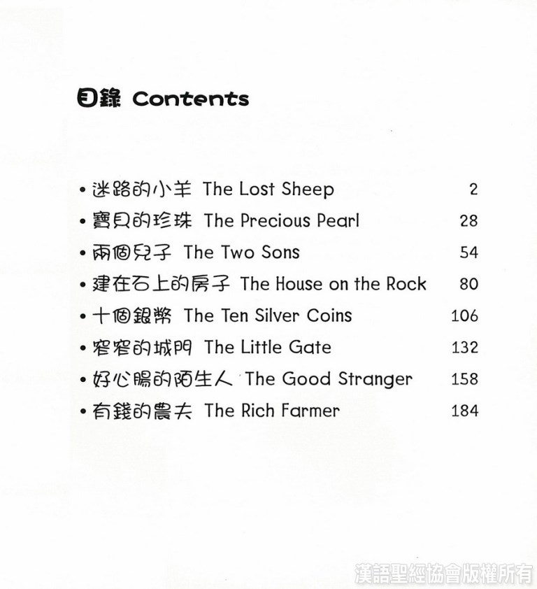 (限量)耶穌說故事-膾炙人口的聖經故事(中英對照,附粵/英雙語故事CD) 作者 : 力克.畢特沃夫/米克.英格彭 出版社 : 國際漢語聖經出版社有限公司 商品語言: 繁體中文/英文 裝訂: 精裝 貨品尺寸/規格:15.9 x 17.7 x 1.8 cm 限制數量: 供貨狀態: 譯者 : 出版日期: 2005/03/01 頁數: 209 適用分類: 全 運送條件: 不拘 (商品已缺貨,可來電書房門市詢問能否調貨) 調貨說明 NT$324 NT$360 折扣: 9 折 數量: 缺貨中 加入追蹤清單 可訂購時通知我 分享: 商品介紹 作者簡介 目錄 書摘/導讀 推薦序 沒有人比耶穌更懂得說故事。祂總能用生活的細節和淺白的言語解說天國的道理。本書收錄了8個中英對照的故事,插畫柔和細緻,文字親切活潑,配以純正英╱粵語錄製的CD,讓小朋友的眼睛、耳朵和思維想像都沉醉在耶穌的故事世界裏。 最近閱覽過的商品 買過這本書也買了