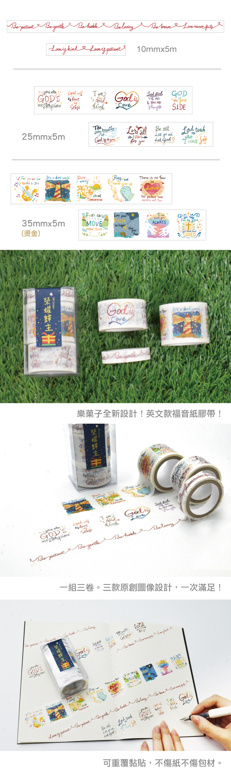 福音紙膠帶套組-一組3卷(TAP004) 作者 : 出版社 : 樂菓子 商品語言: 裝訂: 貨品尺寸/規格: 限制數量: 供貨狀態: 譯者 : 出版日期: 頁數: 適用分類: 全 運送條件: 不拘 (商品可訂購,結帳後立刻為您進貨,請安心訂購) 調貨說明 NT$252 NT$280 折扣: 9 折 數量: 放入購物車 加入追蹤清單 分享: 商品介紹 作者簡介 目錄 書摘/導讀 推薦序 最近閱覽過的商品 買過這本書也買了