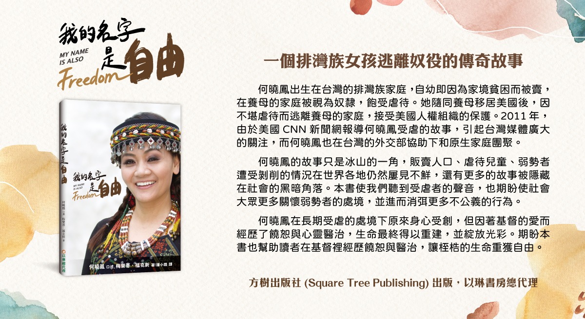 「你在想什麼?你到底要怎麼做呢?你一輩子都沒寫過這樣的東西啊!」我揮揮手趕走了這些念頭,大聲說:「太陽愈來愈熱了!」這本書的出版商是我的好友,在教會聽夏蕾演講後和她碰面。當晚的主題是「人口販運」(Human Trafficking),夏蕾的故事深深觸動了她。年幼時的夏蕾七歲就在台灣被父母賣掉,當了二十多年的奴隸,最後留在美國。如今,歷經將近一年的鼓勵和許多的禱告,夏蕾同意讓我們倆協助寫她的故事。夏蕾當奴隸的這些年間被剝奪的事物是如此之多─她從未被允許上學,所以她說和寫自己語言或英語的能力非常有限;她也從未學過開車。我們選了一個就近碰面的地點,她從公寓步行到咖啡館只需幾分鐘的路程。