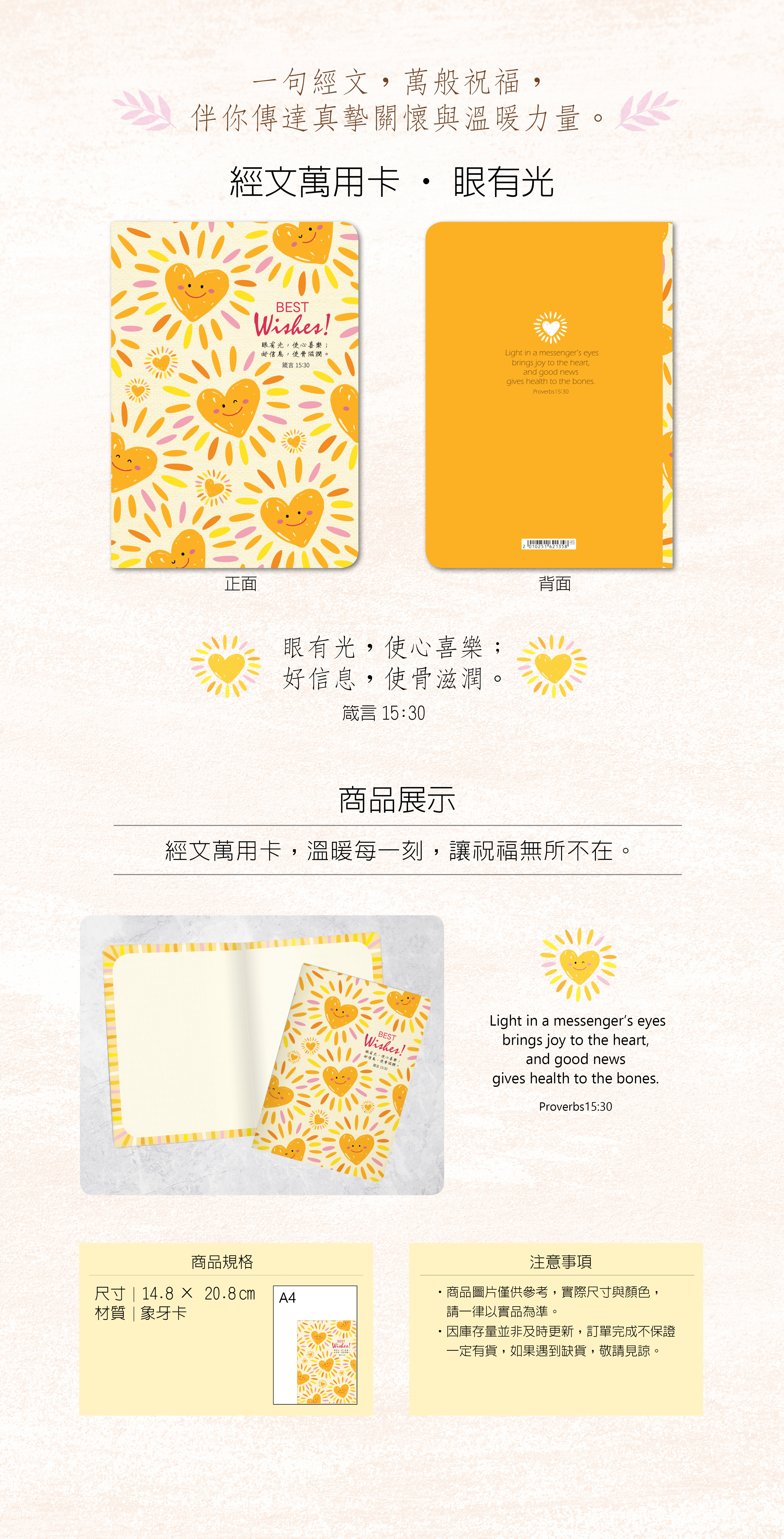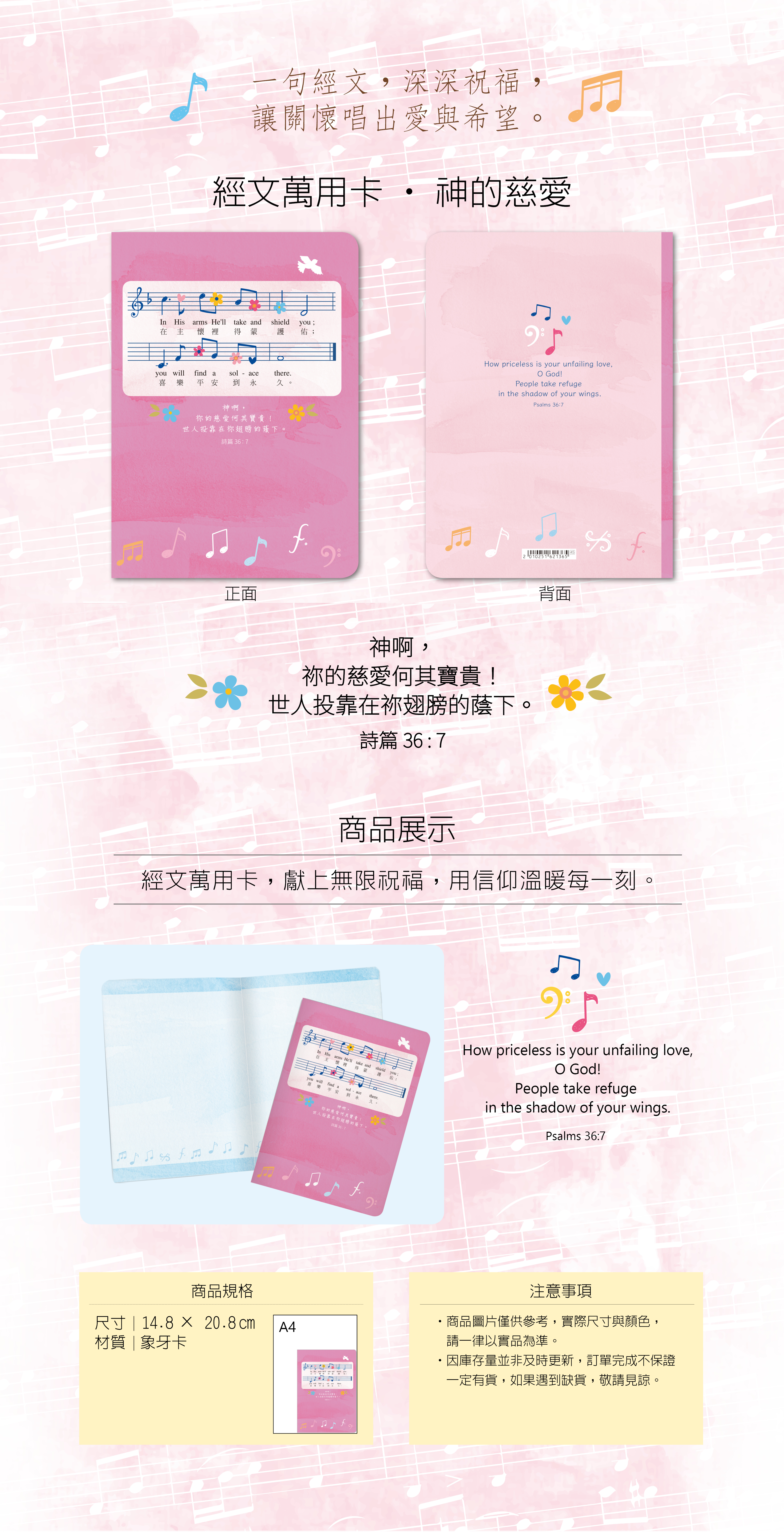 經文禮卡.萬用卡.中小開.多人祝福(2款可選) 作者 : 出版社 : 以琳書房 商品語言: 繁體中文/英文 裝訂: 貨品尺寸/規格:14.8 ×21 cm 限制數量: 供貨狀態: 譯者 : 出版日期: 2025/09/01 頁數: 適用分類: 全 運送條件: 不拘 (商品可訂購,結帳後立刻為您進貨,請安心訂購) 調貨說明 笑臉愛心:41 元 詩歌樂譜:41 元 NT$45 折扣: 0 折 數量: 放入購物車 加入追蹤清單 分享: 商品介紹 作者簡介 目錄 書摘/導讀 推薦序 建議使用油性筆書寫 最近閱覽過的商品 買過這本書也買了