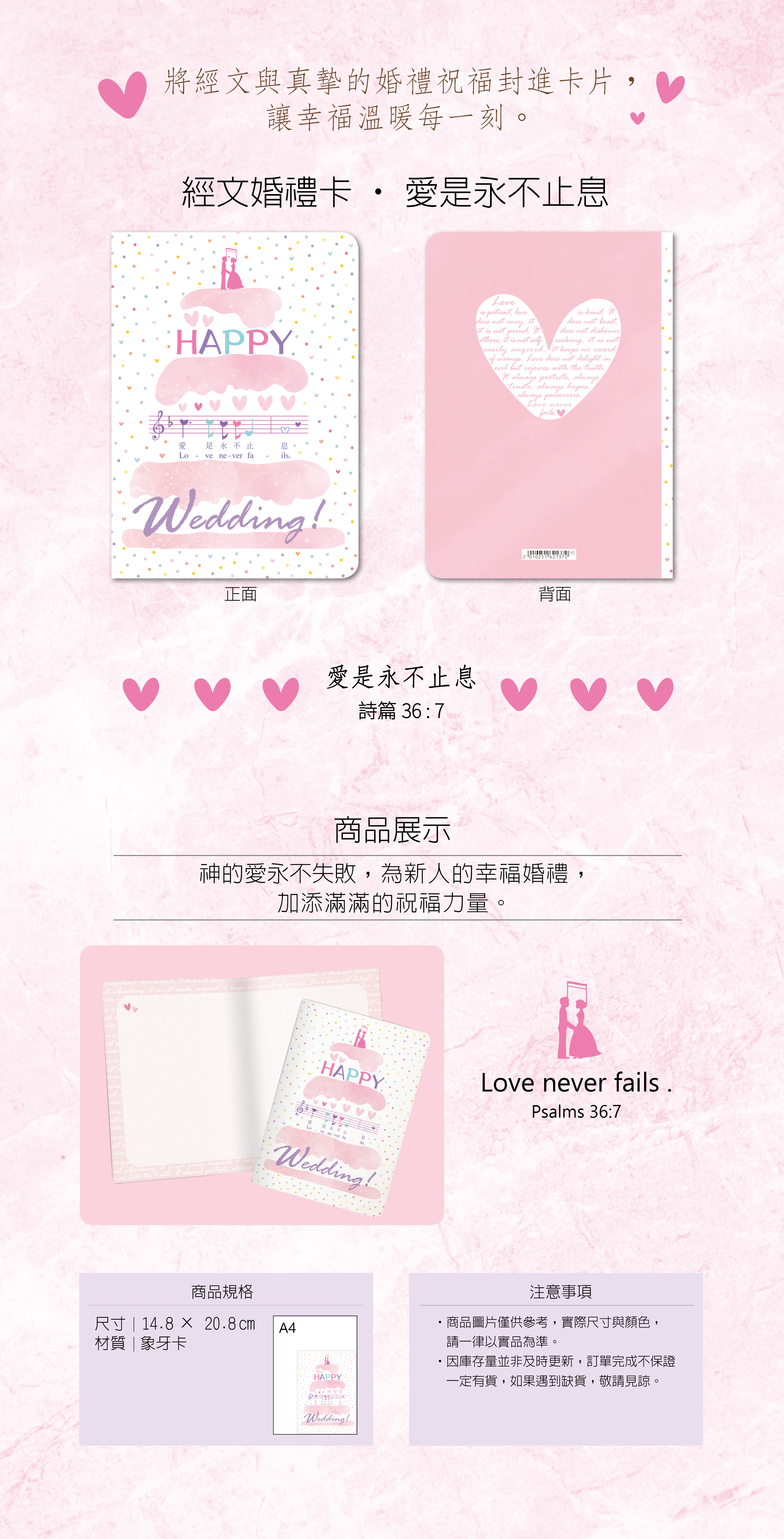 經文禮卡.婚禮卡.結婚.中小開.多人祝福(2款可選) 作者 : 出版社 : 以琳書房 商品語言: 繁體中文/英文 裝訂: 貨品尺寸/規格:14.8 ×21 cm 限制數量: 供貨狀態: 譯者 : 出版日期: 2025/09/01 頁數: 適用分類: 全 運送條件: 不拘 (商品可訂購,結帳後立刻為您進貨,請安心訂購) 調貨說明 蛋糕:41 元 音符:41 元 NT$45 折扣: 0 折 數量: 放入購物車 加入追蹤清單 分享: 商品介紹 作者簡介 目錄 書摘/導讀 推薦序 建議使用油性筆書寫 最近閱覽過的商品 買過這本書也買了