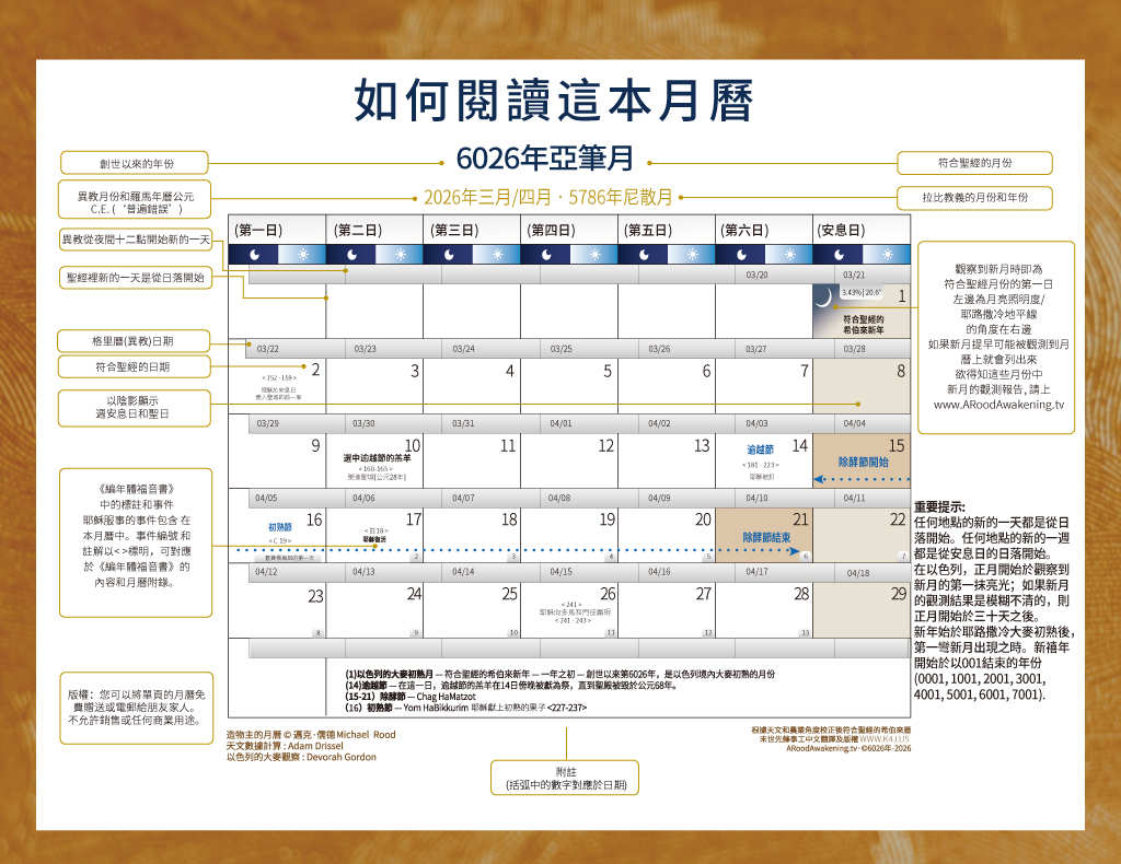 《根據天文和農業角度校正後符合聖經的希伯來月曆》6026年亞筆月1日/2026-2027年©邁克·儒德(Michael Rood)