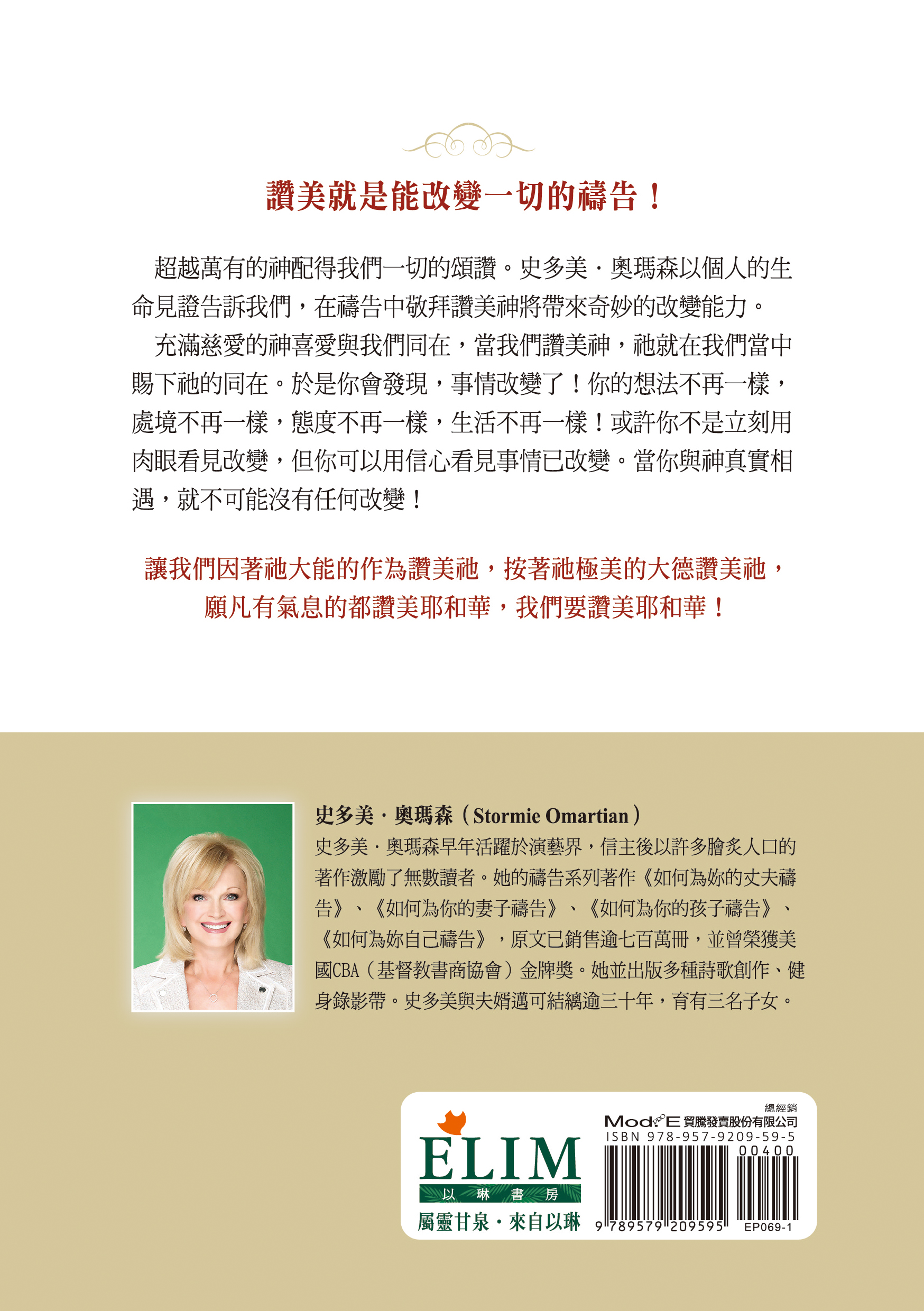 超越萬有的神配得我們一切的頌讚。史多美.奧瑪森以個人的生命見證告訴我們,在禱告中敬拜讚美神將帶來奇妙的改變能力,包括:
