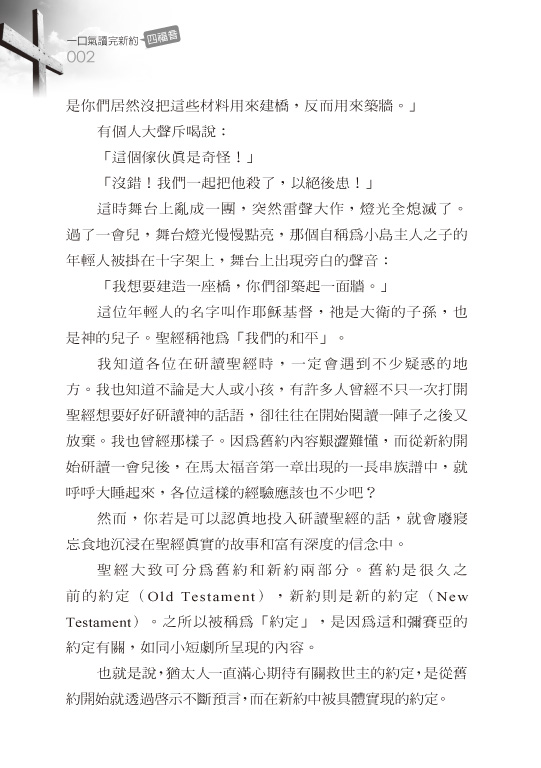 朴應淳牧師延續《一口氣讀完舊約》,又再次寫下一部曠世鉅作。無論你是不是基督徒,這都是一本絕妙的好書,可以用簡單的方式解明令人難以理解的聖經故事。本書以簡單有趣的方式重新詮釋看似生硬的新約聖經內容,幫助基督徒明白其中的意義,讓尚未成為基督徒、但對基督信仰有興趣的人,也可以慢慢了解聖經中的信息。