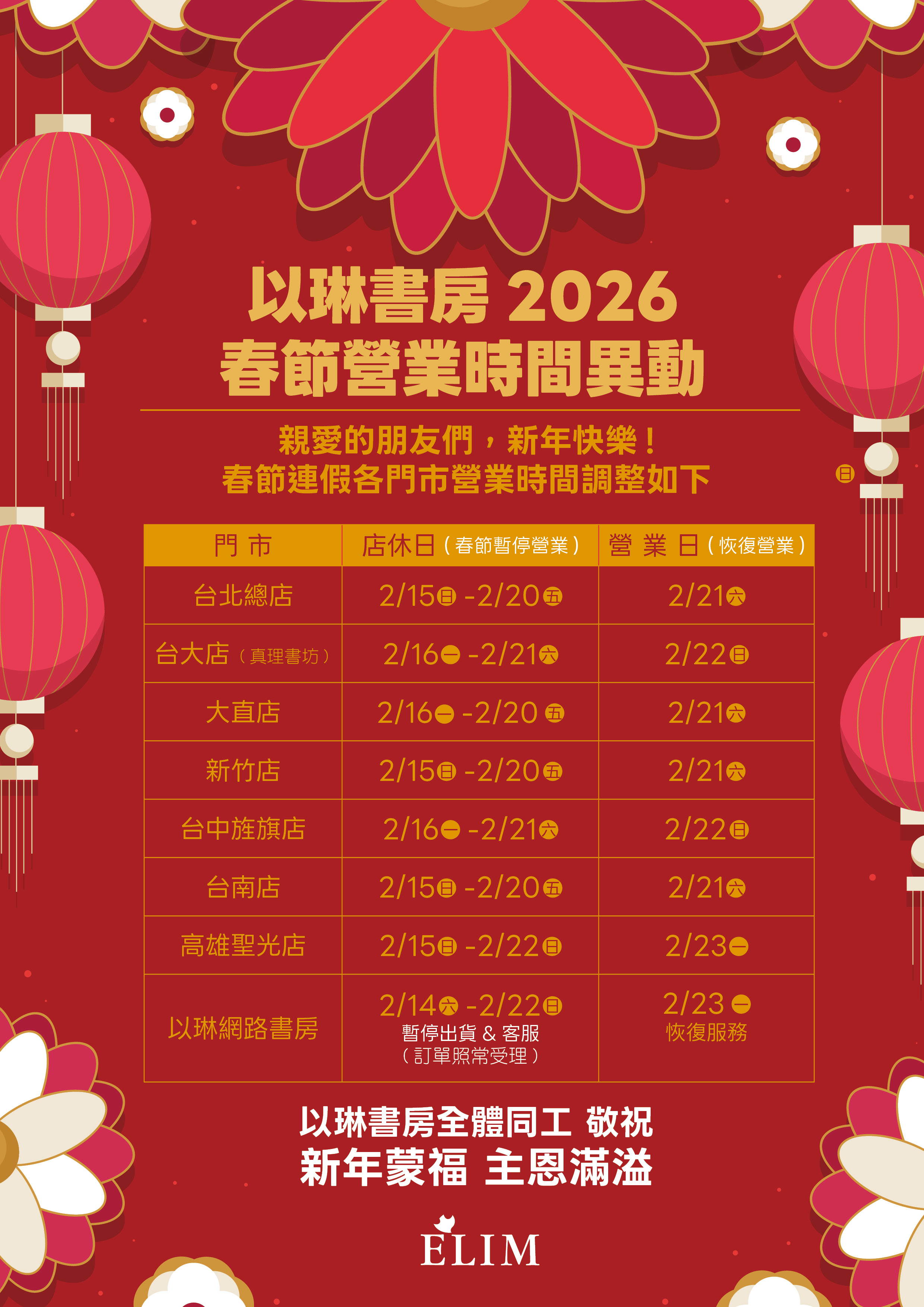 因應春節連續假期,以琳網路書房出貨時間異動如下: